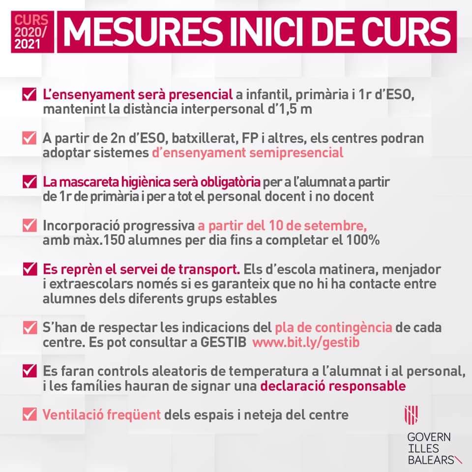 Des de la Conselleria ens fan arribar aquestes mesures per a tenir un inici de curs el més tranquil possible.