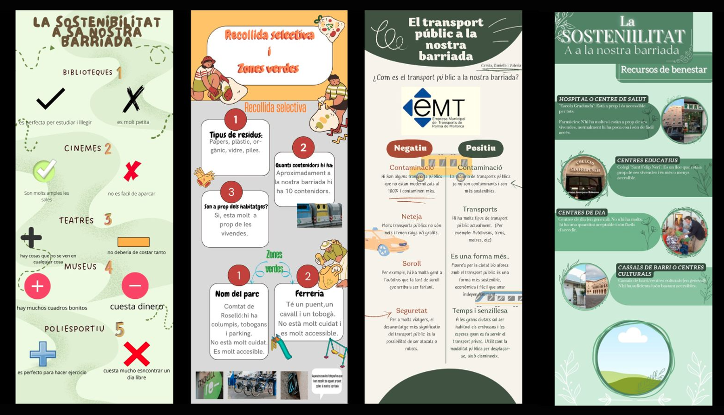 Per això, s'han convertit en investigadors sobre sostenibilitat creant les seves definicions; en inspectors de medi ambient investigant i analitzant com és de sostenible la nostra ciutat; en empresaris amb idees i objectius d'empreses sostenibles. Tot preocupant-se d'entendre tot el contingut i de com ho havien de fer per tal d'expressar-se correctament amb un registre i una tipologia textual adequats.