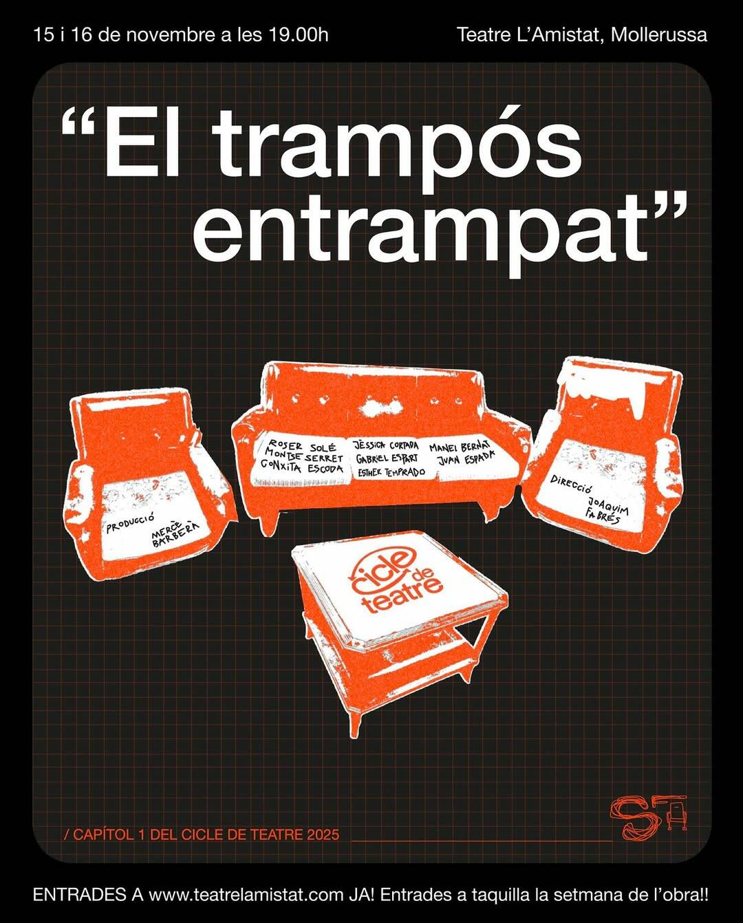 El grup de teatre Som Faràndula estrenarà els dies 15 i 16 de novembre la comèdia El trampós entrampat, de l'autor Nick Hassy (pseudònim de Nicasi Camps i Pinós). Les funcions seran a les set de la tarda a L'Amistat amb entrades disponibles des d'aquesta setmana al web i a la taquilla dos hores abans. L'obra, plena d'humor, embolics i situacions absurdes, gira entorn d'un rector que organitza una peregrinació femenina a Roma. L'elenc està format per Gabriel Espart, Roser Solé, Manel Bernat, Juan Espada, Conxita Escoda, Montse Serret, Jèssica Cortada i Esther Temprado, amb Mercè Barberà al capdavant de la producció i Joaquim Fabrés a la direcció escènica.