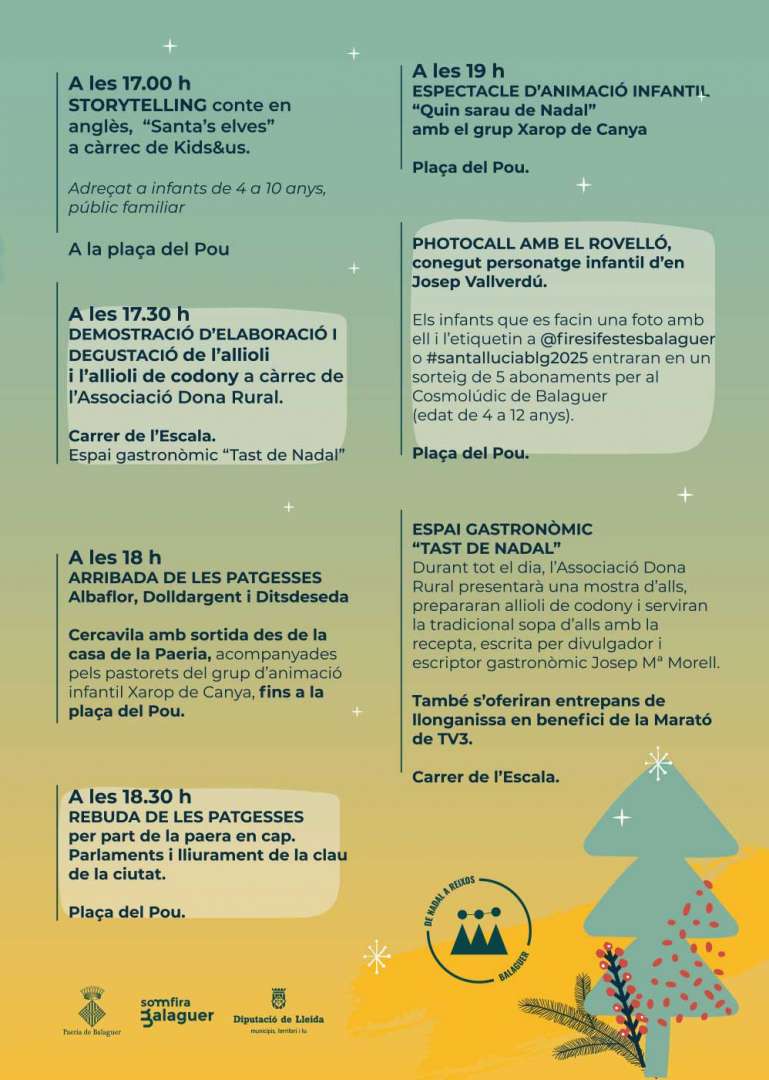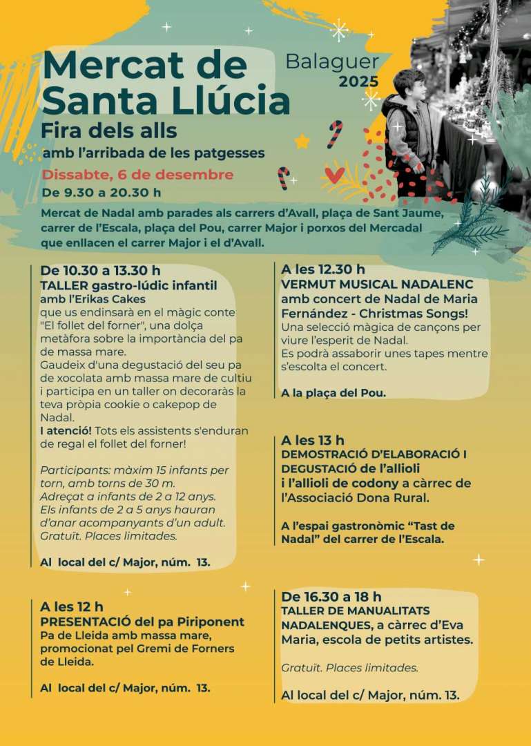 Durante la jornada de la celebración del Mercado de Santa Llúcia - Feria de los ajos, también se realizan diversas actividades paralelas, como por ejemplo, la llegada de las pajas, con salida a las 18 h de la casa de la Paeria y llegada a las 18.30 h en la plaza del Pou
